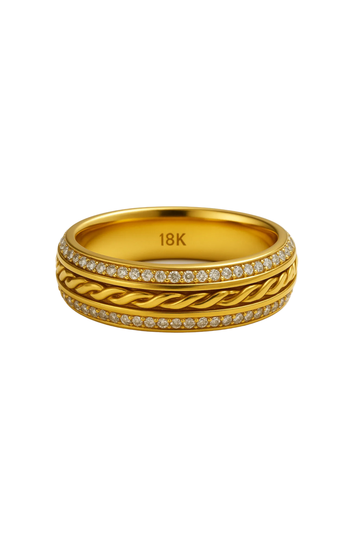 18K Gold Luxury Twisted Rope Diamond Wedding Band - 6mm