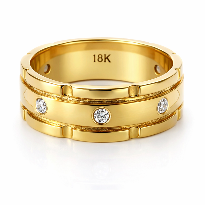 Gold Wedding Band with Bezel Diamond Accents-7mm